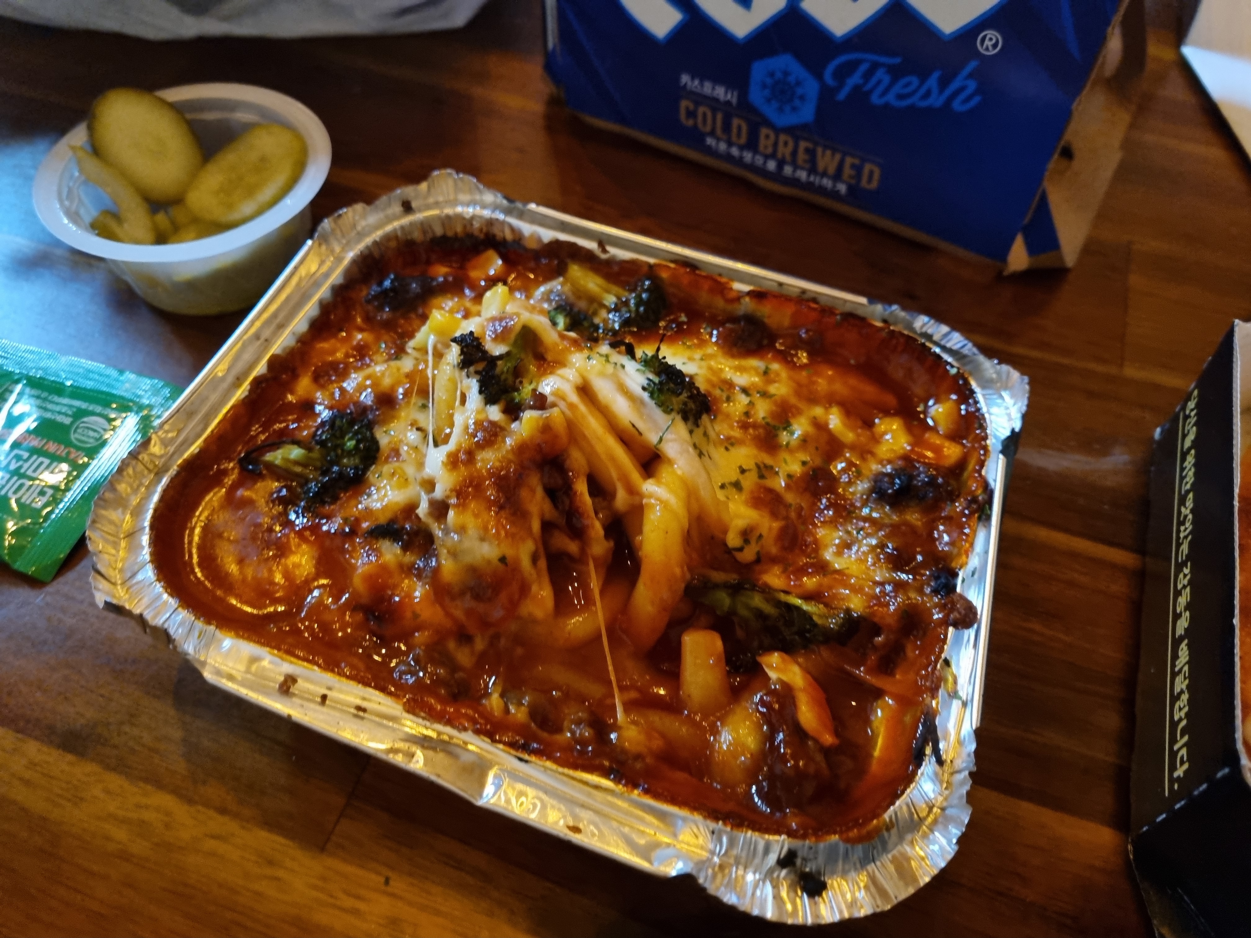 그래서 야식으로 피자와 스파게티까지 시켜 먹고