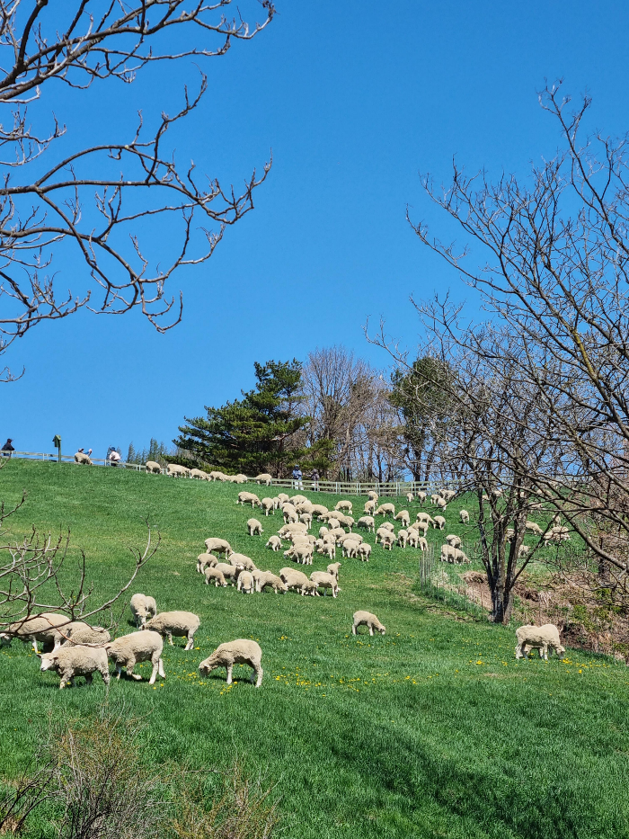 자유롭게 풀을 뜯어먹는 양들을 볼 수 있었습니다.