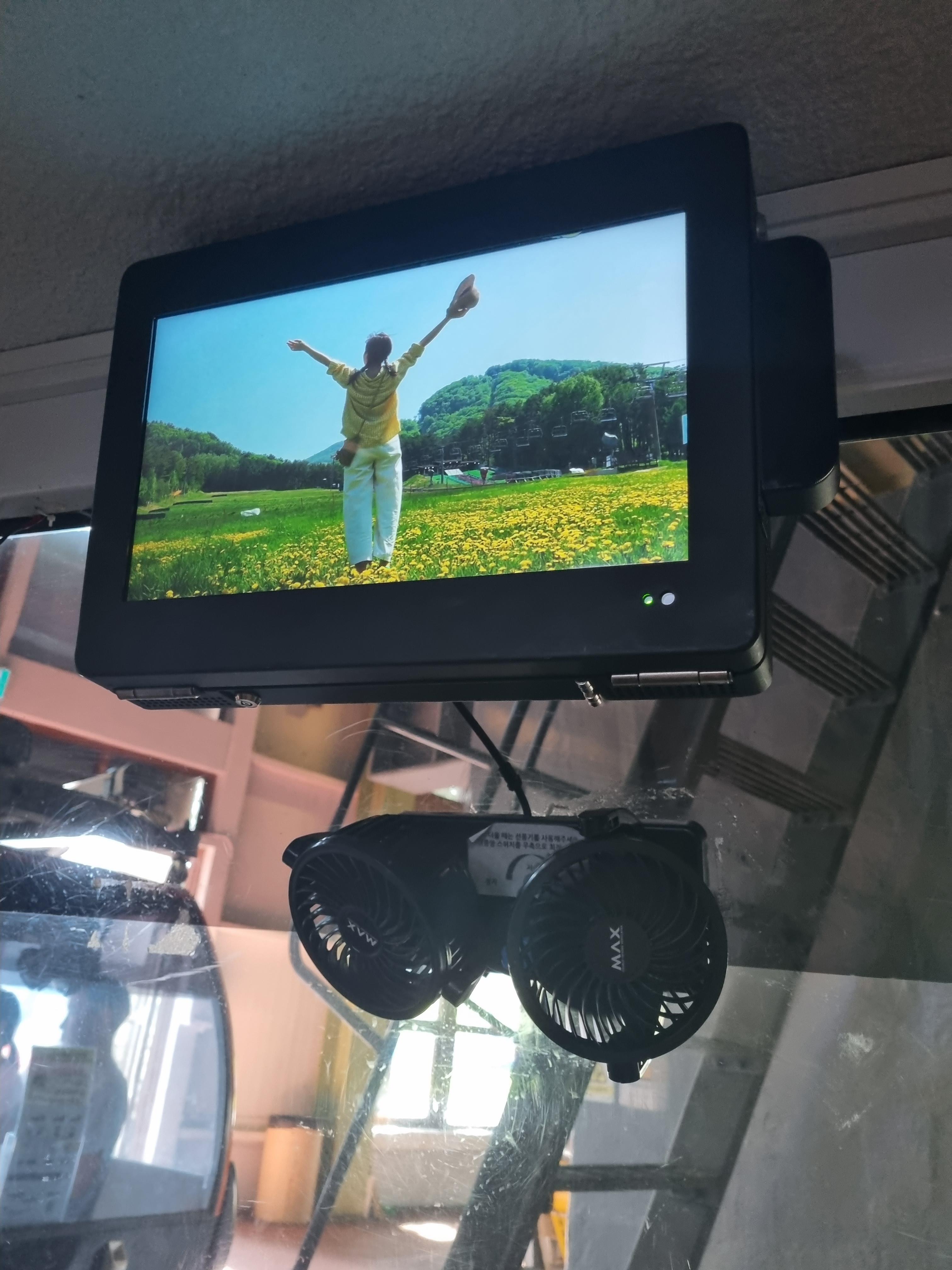 케이블카 안에는 자그마한 미니선풍기 두 개가 있었고
