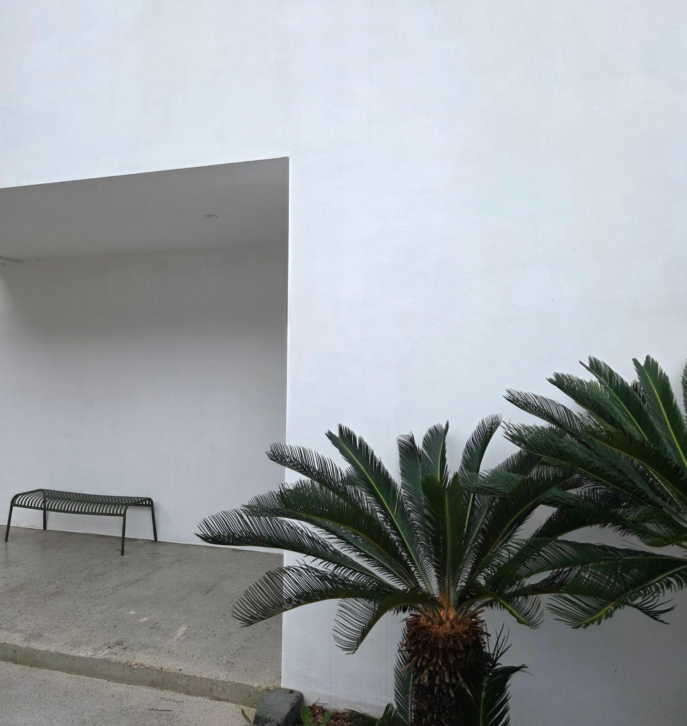 야자수 나무 옆 썬베드도 평범하지 않고