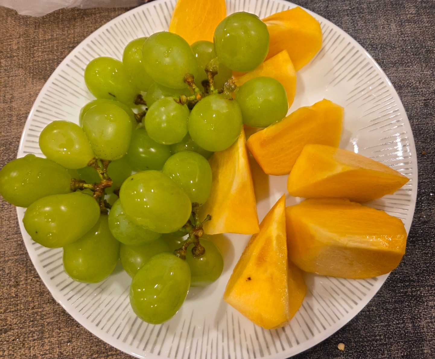 거기다가 샤인머스켓과 감 까지 마무리 디저트로 먹었어요