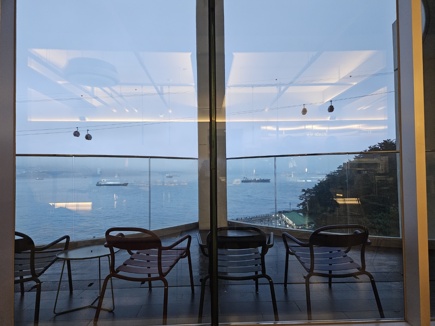 해가 지기를 카페에서 기다리다가 날이 어두워지고 해상케이블카를 타러 이동했습니다