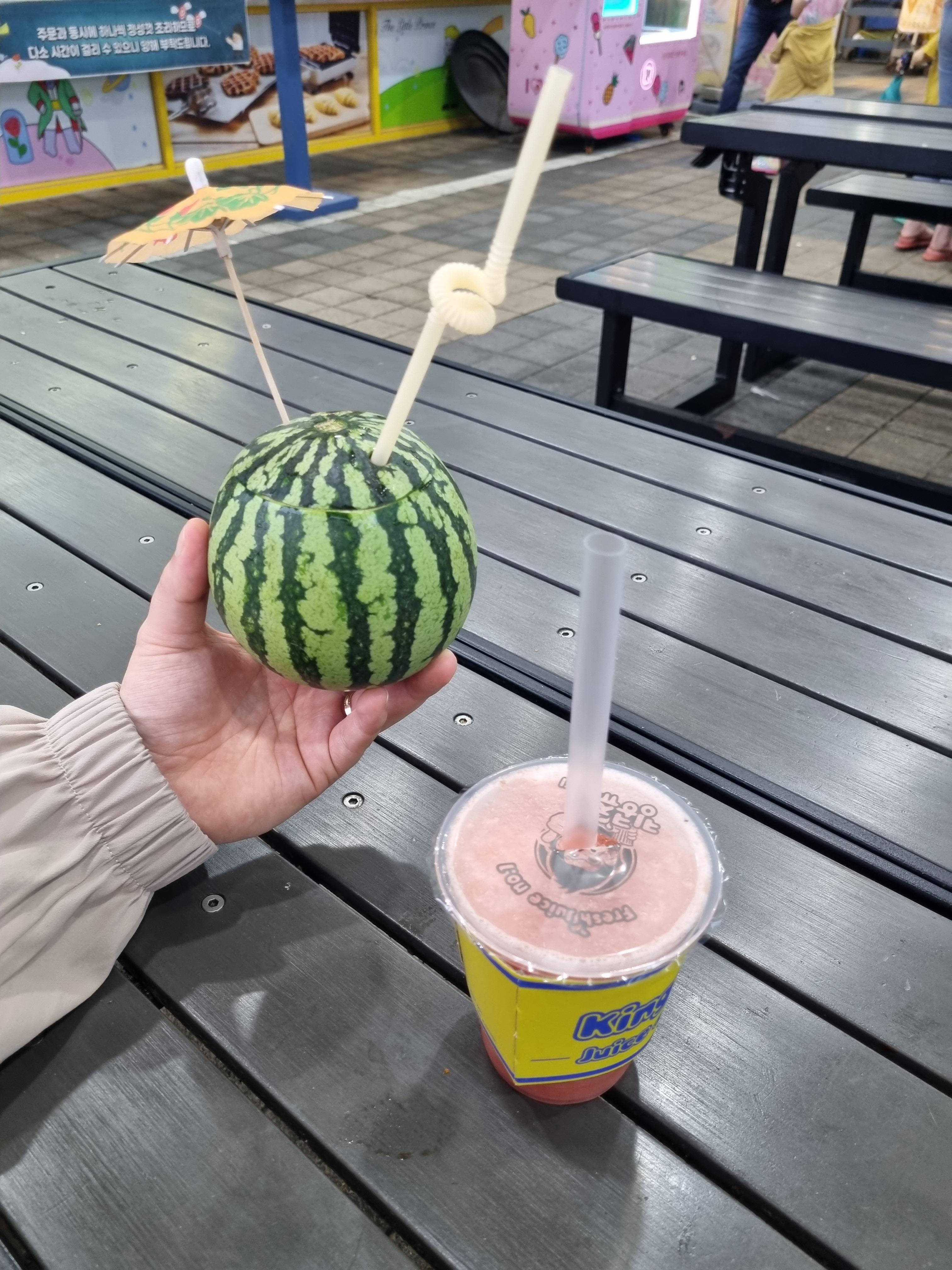 애플수박주스와 아이스 탕후루를 사 먹었는데