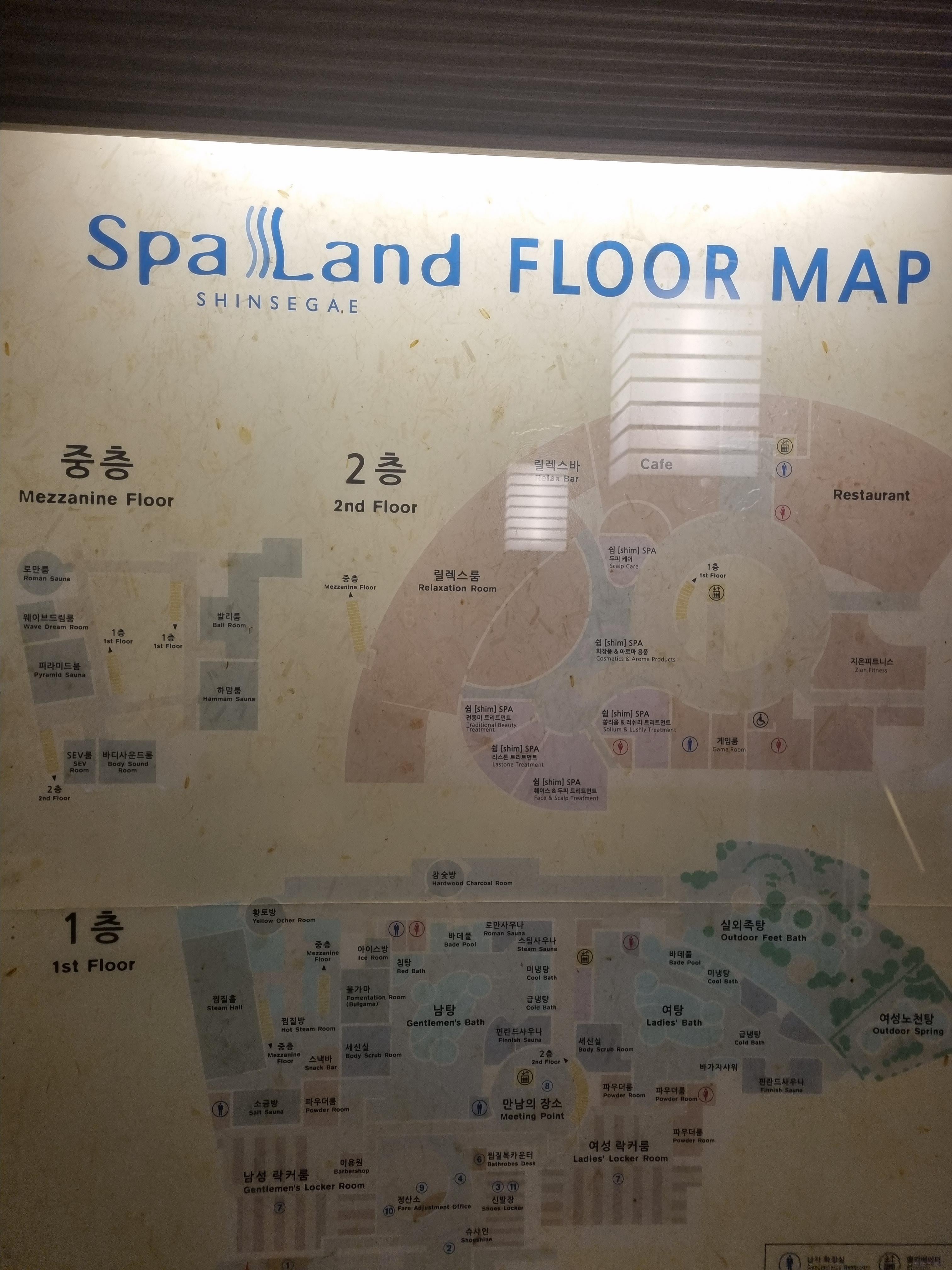센텀 스파랜드 내부는 1층, 중층, 2층으로 이루어져 있었어요