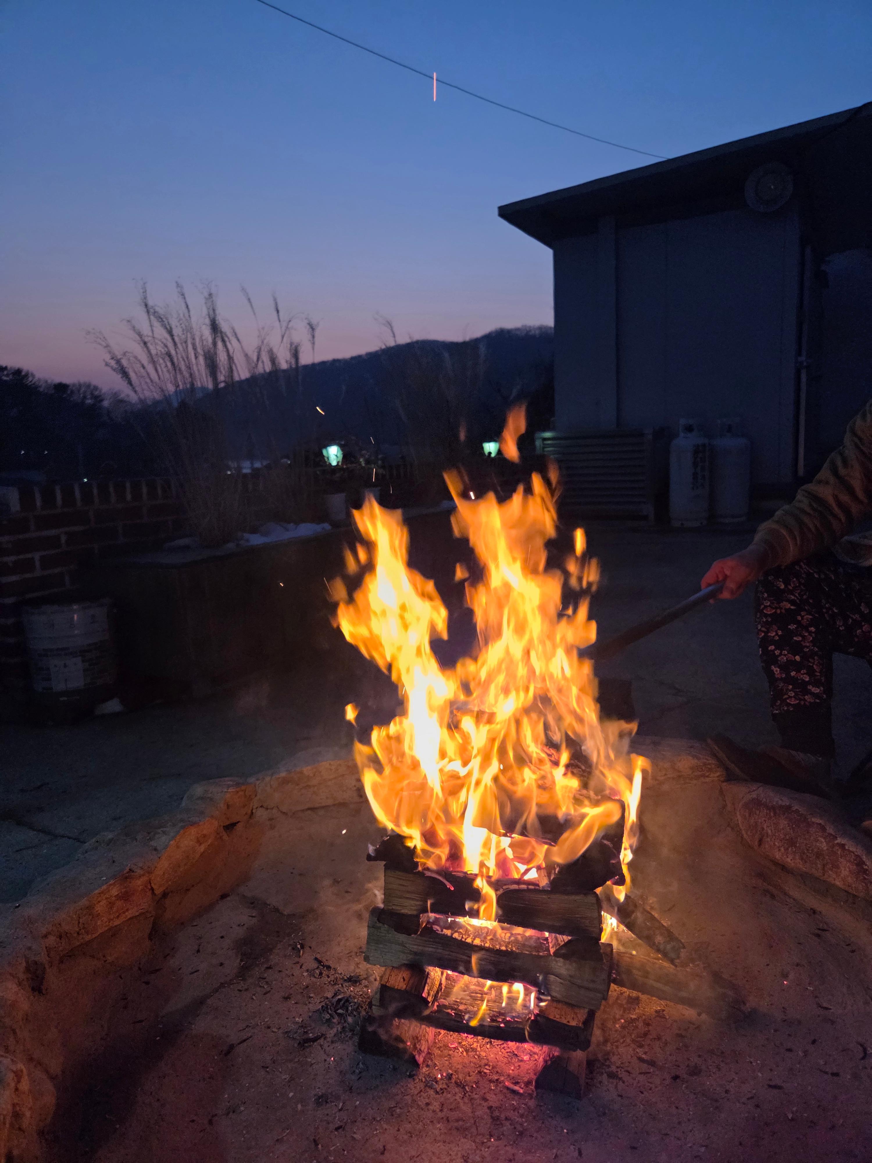 이후에는 불을 피워두고 불멍을 즐겼는데,