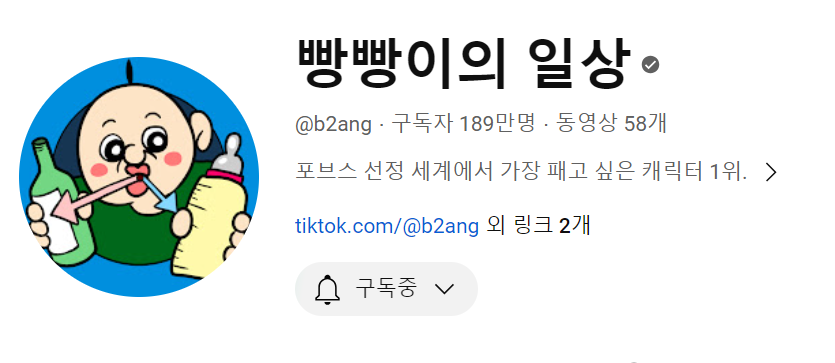 제가 구독하는 유튜버 중 하나인 '빵빵이의 일상'입니다.