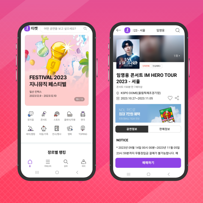 모바일로 티켓 예매를 할 때에는 모바일 사이트를 통해서 진행하기보다 어플로 예매를 하는 것이 더 빠르게 예매가 가능합니다.